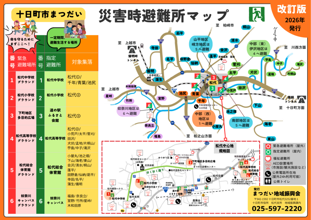 まつだい地域全域 災害時避難所MAP
