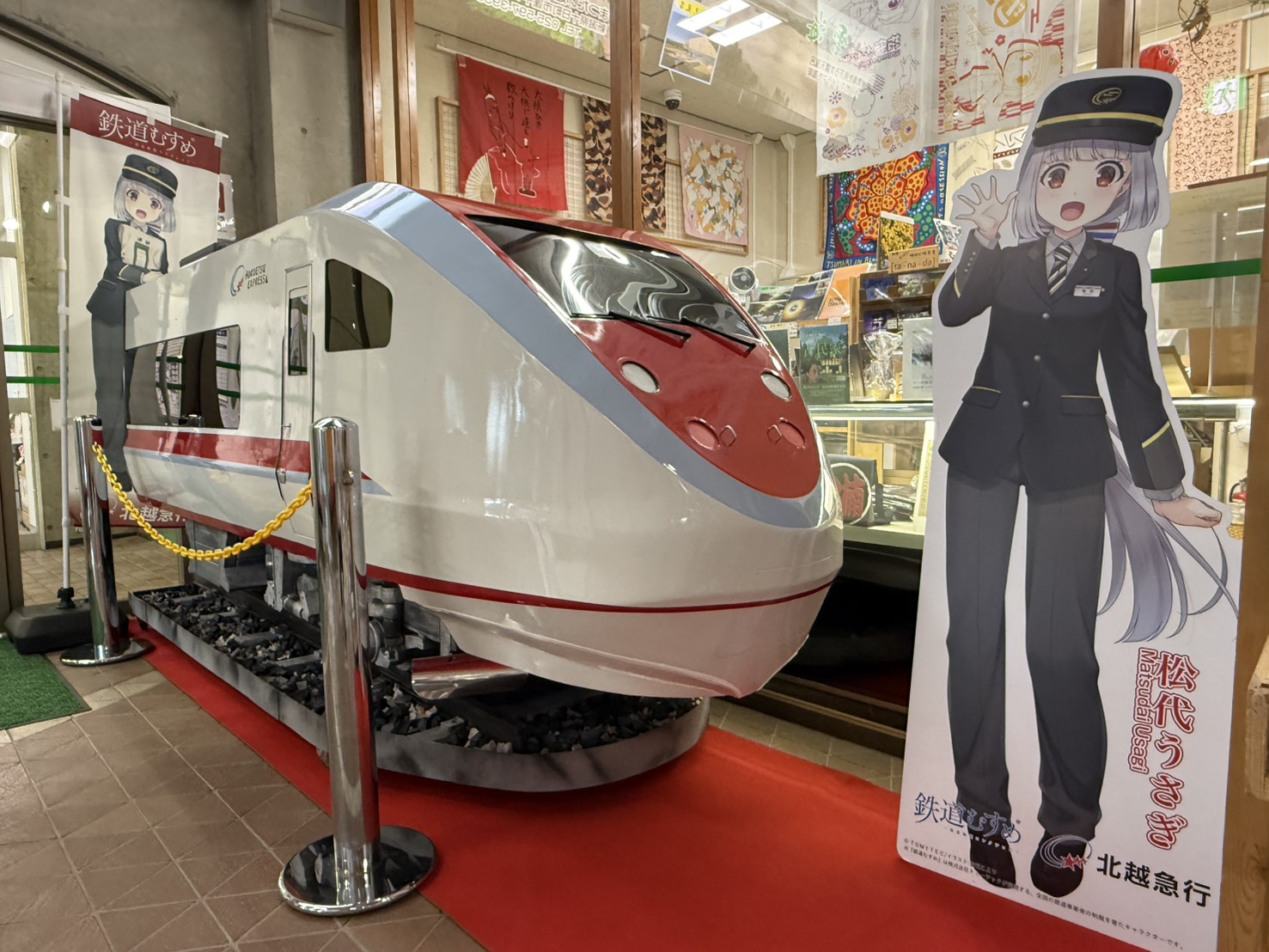 お隣には北越急行の鉄道むすめ「松代うさぎ」のパネルも展示され、まつだい駅の乗降客を出迎えてくれます。