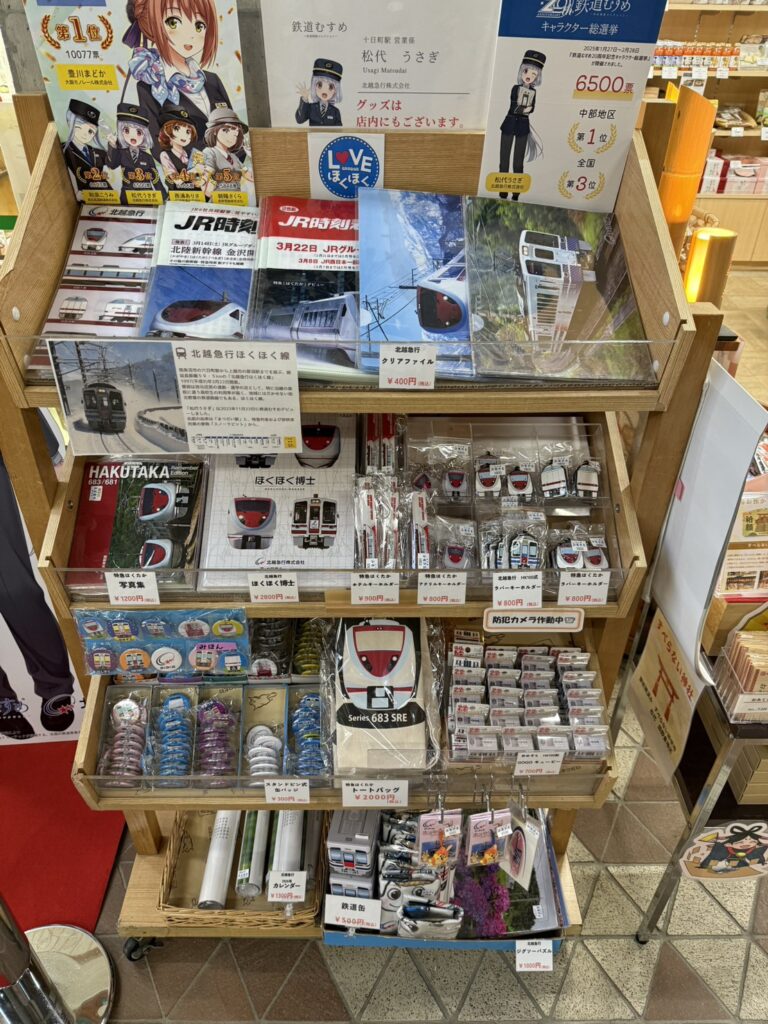 さらに、ふるさと会館内の売店では「はくたか号」関連グッズの販売も。
